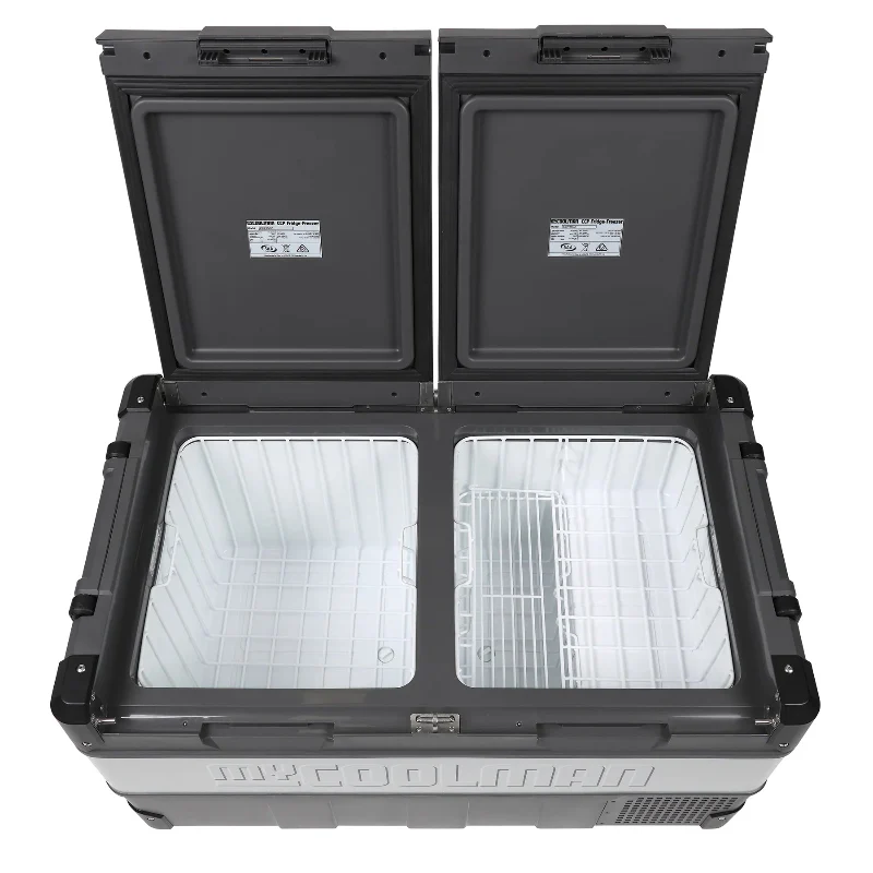 - Enjoy the versality of having a dual zone setup. The myCOOLMAN 85L Portable Camping Fridge/Freezer features a 49.5L refrigerated zone as well as an additional 35.5L of freezer space.